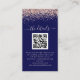 Mini Rose Gold Glitzer QR Code Navy Hochzeitsdetails. Mini Größe, um mit Ihren Einladungen, damit Ihre Gäste alle Details finden können, die sie benötigen. Ein Imitat Glitzer Rand oben auf beiden Seiten mit einem eleganten Skript mit Swashes für den Header. Typograpy ist in einem weichen, rot-grünen Rosa mit marineblau-blauem Hintergrund. Tauschen Sie Ihren QR-Code auf Ihre Hochzeitswebsite ein. Um einen QR-Code zu erstellen, suchen Sie online "einen QR-Code generieren"