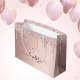 Eine Geschenktasche für einen gmädchenhaften und glamourösen Geburtstag. Ein Imitat Rose goldener Hintergrund mit eleganten rosa und Rose Gold Glitzer Tropfen, Farbe Tropflook. Personalisieren und fügen Sie einen Namen und einen Monogrammbuchstaben hinzu. Der Name ist bordeauxrot geschrieben mit einem modernen handgeschriebenen Stil-Skript mit Swashes. Um die Swashes behalten, löschen Sie nur den Beispielnamen, verlass die Leerzeichen oder Emoji's vor und nach dem Namen.