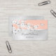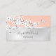 Der obere Teil dieser femininen Visitenkarte ist mit einem Zweig aus Kirschblüten auf einer Rose Gold Glitzer Hintergrund. Im unteren Teil befindet sich ein transparenter Goldtext in Rose, der mit einem individuelle Name in einem handgeschriebenen Schrift hinterlegt ist. Auf der Rückseite sind benutzerdefinierte Texte und ein scannbarer qr-Code für eine Website oder Social Media-Site. Ideal für Unternehmerinnen, Künstler, Schönheitssalon Wellness-Center..