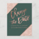 Rose Gold Typografie auf anpassbaren Tiefwald grüne Rose Gold Glitzer Farbblock, und Imitate Rose goldene geometrische Streifen chic ändern das Datum der Hochzeit , um die Verschiebung Ihrer Hochzeit und neue Pläne bekannt geben