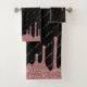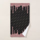 Trendy Pink Rose Gold Glitzer Sparkle Tropfen Badehandtuch Set mit Ihrem individuelle Name in stilvollen handgeschriebenen Typografie und in einem chic Muster auf einem Hintergrund von mädchenhaften Imitate Glitzer Tropfen auf einem schicken schwarzen Hintergrund. Perfekt für Ihre Glitzer Ästhetik. Bitte kontaktieren Sie uns unter cedarandstring@gmail.com , wenn Sie Hilfe beim Design oder den passenden Produkten benötigen.