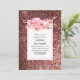 Rosa Blume und Rose Gold Glitzer - elegante Vintage und Glamour Babydusche Einladungen