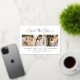 Moderne Rose Goldfolie, Schwarz und Weiß-Hochzeit speichern die Datumskarten mit einer Collage von drei quadratischen Verlobungen Fotos und einem stilvollen Typografie-Design mit chic Kalligraphie-Skript und einem Herz-Akzent. Der einfache und elegante, kundenspezifische Text, der mit dem numerischen Hochzeitstermin, den Braut- und Bräutigam-Namen, der Zeremonie-Position, der Hochzeitswebsite und der formellen Einladung zum Nachfassen von Formulierungen vollständig personalisiert werden kann.