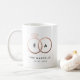 Ein modernes Monogramm bekommt Glamour mit verflochtenen goldenen Hochzeitsringen in der Rose, mit leicht zu personalisierendem Text für Ihre Initialen, verheiratetem Namen und Hochzeitsdatum auf dieser klassischen weißen Tasse, die es zu einer lustigen HausErwärmung oder zu einem Jubiläumsgeschenk für die Neuvermählten macht.