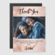 Eine Rose goldene Farbverlaufsfarbe, mit goldenen Marmorvenen aus Rose verziert. Große handgeschriebene Skripte mit Swashes und den Text: Danke. Personalisieren und fügen Sie Ihr Foto, danke Ihnen Notiz und Name.