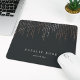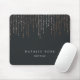 Chic personalisiertes Mousepad zeigt Ihren Namen, Ihren Firmennamen oder die Auswahl von Sondertexten in klassischer Weißschrift auf einem weichen schwarzen Hintergrund mit vertikalen Streifen von Imitaten Rose goldfarbene Folienzeichenbeleuchtung von oben kaskadiert.