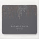 Chic personalisiertes Mousepad zeigt Ihren Namen, Ihren Firmennamen oder die Auswahl von Sondertexten in klassischer Weißschrift auf einem reichhaltigen, mittelgrauen Hintergrund mit vertikalen Streifen von Imitaten Rose goldenen Folienzeichenbeleuchtung von oben kaskadiert.