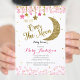 Sur la Lune Baby shower Invitation pour fille avec une lune, étoiles, et belle fausse parties scintillant or.