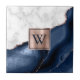 Eleganter weißer Marmor und marineblauer Schnabel bestickt mit Imitaten Rose Gold Glitzer verbinden sich in diesem luxuriösen Design. Personalisieren Sie es mit Ihrem ersten in marineblau serf Schriftart in einer doppelrangigen Rose Gold Imitate gebürstete Metall quadratische Rahmen.
