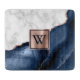 Eleganter weißer Marmor und marineblauer Schnabel bestickt mit Imitaten Rose Gold Glitzer verbinden sich in diesem luxuriösen Design. Personalisieren Sie es mit Ihrem ersten in marineblau serf Schriftart in einer doppelrangigen Rose Gold Imitate gebürstete Metall quadratische Rahmen.