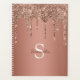 Profitez de ce design élégant avec votre nom et monogramme ou initial avec parties scintillant en cuivre rose chic et brillant goutte sur un arrière - plan rose en feuille d'or.
