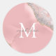 Rose Gold Pink Girly Monogram Name Marble Glitzer Klassischer Rundaufkleber