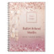 A rose gold and pink gradient background. Decorated with rose gold, pink faux glitter dust and ballerina, ballet pointe shoes. A journal for ballet, dance schools and teachers.