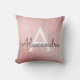Rose Gold rosa Monogramm Name und Anfangskissen. Das Kissen ist das ideale Geschenk für jemanden, der sein Zimmer in Rose Gold verziert.