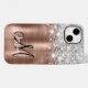 Rose Gold Pinselmetall Silber Glitzer Monogramm Case-Mate iPhone 14 Hülle