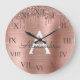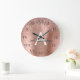 Rose Gold - Rosa Rosa Glitzer Metal Monogramm Name Große Wanduhr