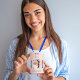 Ein Abzeichen für Schminkkünstler, Nageldesigner, Friseur, Designer, Beauty Salon Besitzer. Eine Rose Gold Imitate metallisch aussehend Hintergrund. Fügen Sie Ihr Foto, Titel, Firmenlogo, Shop-Name hinzu. Zurück: Ihr Text. Strichcode löschen, falls noch erforderlich