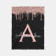 Rose Gold - Schwarz rosa Glitzer Schwarzes Monogra Fleecedecke