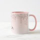 Eine elegante, mädchenhafte und glänzende Tasse. Rose Gold, Imitate Glitzer Tropfen, Farbe Tropfen aussehen. Rosa Farbverlaufshintergrund. Personalisieren Sie Ihre Namen und Monogramm-Initialen Dark Rose Gold und Graue Buchstaben.
