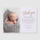 Cette photo moderne de remerciement note comprend un script manuscrit en or rose, un message personnel et une photo verticale sur le devant. Le dos est un aimant.