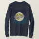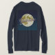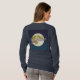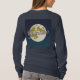 This t-shirt features a vector image of a full moon on a blue starry sky. The moon is a light color with surface details and craters. The word Grandma is written in script across the moon's surface in a metallic rose gold with a gradient effect. White stars are in the blue sky background, creating a nighttime celestial atmosphere. The stars are stylized with small sparkle effects. The t-shirt is a Basic Women's Long Sleeve navy blue t-shirt. The t-shirt is made of 100% cotton The t-shirt has a soft, tag-free neck label with a lay flat collar for comfort.