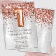Rose Gold Sliver 1st Birthday Party Invitation et or rose élégant moderne 1er anniversaire invitation pour une fille de 1 an avec écriture de script moderne et des ballons de papier amusant.