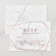 Rose Gold einfache geometrische Hochzeit RSVP. Schöne elegante Marmor Hochzeit RSVP Cards mit einer Rose goldenen geometrischen Rahmen. Dieses maßgeschneiderte, moderne Hochzeitsdesign kann leicht mit Ihren Hochzeitsdetails personalisiert werden.