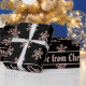 Elegante Rose Gold Weihnachtsschneeflocken Muster mit individuellem Text Frohe Weihnachts Elisabeth Mit Liebe von Christopher auf schwarzem Hintergrund, können Sie ändern oder löschen Sie alle Text, Weihnachts Geschenkpapier, wählen Matte oder glänzend