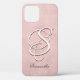 Moderne elegante rustikale abstrakt iPhone 12 Case. Gradient Rose Gold, rot rosa, weiß. Modernes modisches Design. Eine Textvorlage wird zur Personalisierung mit Ihrem Monogramm oder Text hinzugefügt. Sie können auch das Beispielmonogramm löschen, wenn Sie die Telefonzelle ohne Text bestellen möchten.