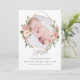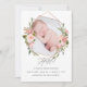 Rosa und Rose Gold Rose Aquarell Blumengeburt viereckige Foto-Ankündigungskarte mit goldenem geometrischem Rahmen.