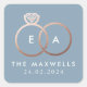Ein modernes Monogramm bekommt Glam mit verflochtenen goldenen Hochzeitsringen in der Rose, mit leicht zu personalisierendem Weißtext für Ihre Initialen, verheiratetem Namen und Hochzeitsdatum auf diesem staubblauen Aufkleber, perfekt für Umschläge und Gastgeschenke Hochzeiten.