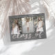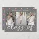 Drei Foto Collage mit benutzerdefinierten whimsical Skript "Klasse von" in Rose Imitat Folie mit Jahr in der gleichen Farbe. Alle Informationen sind in serifenlosen serifenlosen eleganten Schriftart auf der Oberseite der Karte. Die Rückseite ist ein rosa Pink-Pollka-Punkt-Glitzer-Muster. Machen Sie schöne, maßgeschneiderte Ankündigungen mit einfacher Anpassung.