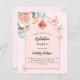 Rosa Hintergrundfarbe mit Rose, goldgelb und pfirsichfarbenem Bogen. Dekoriert mit einer Rose Gold und rot rosa Blumen, Blume der Rose, grüne Aquarell Eukalyptusgrün und Schmetterlinge. Personalisieren und fügen Sie einen Namen und Party-Details hinzu. Zurück: Rose goldene Hintergrundfarbe. 1 Blatt = 1 Einladung mit Druckkante bis Kante.
