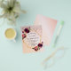 Bitte beachten Sie, dass diese Einladung auf Flyer Papier und sehr dünn ist. Umschläge sind nicht enthalten. Für dickere Einladungen (gleiche Gestaltung) besuchen Sie bitte unseren Shop. Im Vordergrund: Eine Einladung für eine 50-jährige, 50. Geburtstagsparty (oder jedes Alter). Eine Rose Gold, rot-rosa farbener Ober-Hintergrund mit einem vergoldeten geometrischen Rahmen in Imitaten. Die Einrichtung besteht aus dunklen, lila und bordeauxfarbenen Blume, Rose und Boho-Federn. Imitate Rose Gold Glitzer Tropfen. Vorlagen für einen Namen und Party Details. Der Name wird mit einem handgeschriebenen Stilskript geschrieben, mit grauen Buchstaben. Zurück: Rose Gold, rot rosa, farbiger Hintergrund.