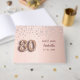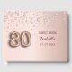 Ein Gästebuch für eine mädchenhafte und glamouröse 80. Geburtstagsfeier. Ein Imitat Rose goldener Hintergrund mit rosa Imitat Diamanten. Personalisieren und fügen Sie einen Namen und ein Datum hinzu. Der Name ist in dunklem Rose Gold mit einem modernen handgeschriebenen Stil geschrieben. Nummer 80 wird mit einem Schriftart im Ballonstil geschrieben.