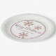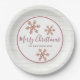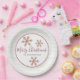 Set eines eleganten Feiertagstisches mit diesen schicken personalisierten Tellern aus Papier mit einem rustikalen Imitat Rose Gold Schneeflocke Design, perfekt für Weihnachten oder jede Winterfeier. Frohe Weihnachten in einem skurrilen, handgeschriebenen Skript-Schriftart in rosa Rosengolde und einem dunkelmauvem Tropfschatten können auf Happy Holidays bearbeitet werden, wenn Sie es vorziehen. Fügen Sie Ihren Namen in einem einfachen Schriftart in die weiße Mitte jeder Papiertafel gerimmt in einer weichen Rose goldfarben auf einem Imitat weißes Holz Hintergrund. Drei Imitate Rose Gold Glitzer Schneeflocken verstreut um Ihren eigenen Text vervollständigt das Aussehen dieser maßgeschneiderten Weihnachts-Teller für Ihre eigene schöne Feierabend Party Dekoration.