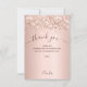 Eine Rose mit goldenem Hintergrund, mit Konfetti dekoriert. Große handgeschriebene Skripte mit Swashes und den Text: Danke. Personalisieren Sie Ihre Dankeschön Notiz und Name hinzufügen.