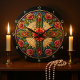 Diese exquisite Wanduhr besticht durch ein wunderschönes Buntglasdesign, das um ein Kreuz herum zentriert ist und mit eleganten rosa Rosen und üppig grünen Blätter geschmückt ist. Die zarte Artistik und die ruhige Farbpalette schaffen ein faszinierendes und inspirierend Stück, das perfekt dazu geeignet ist, jedem Raum eine Touch von Anmut und Glauben hinzuzufügen. Bearbeiten Sie die Farbe der Uhrennummern im Design-Tool nach Ihren bevorzugten Farben.