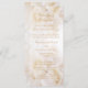 Elegantes und romantisches Hochzeitsprogramm mit weißen cremefarbenen Rose in sanftem Licht.
