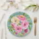 Aqua Glitzer ist die perfekte Glam-Kulisse für diese feminine Rose Blumendruck in Rosa, Pfirsich und Creme. Diese auffälligen Teller werden sicherlich jede Feier aufheitern.