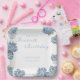 Schöne, moderne und elegante Teller aus dem Erwachsenenalter, die mit handgemalten Aquarell-blauen Rose in einem künstlerischen und einzigartigen Layout entworfen wurden. Individuell für jeden Geburtstag Meilenstein. Skript in zartem staubblauer Farbe mit einem schlauen Rand