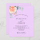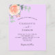 Ein violetter, lavenderfarbener Hintergrund. Dekoriert mit einer Rose Gold und rot rosa Blumen, Rose Blume und grüne Aquarell Eukalyptus Blätter, Sprigs, Grün und Imitate Gold sprigs. Personalisieren und fügen Sie Ihre Namen und Hochzeitsdetails. 1 Blatt = 1 Einladung mit Druckkante bis Kante.