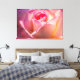 Ein nah-up Foto zeigt die zarte Schönheit einer rosa Rose. Die Blätter sind weich und samtig, mit einem Farbverlauf von einem tiefen Rosa in der Mitte bis zu einem helleren Rosa an den Kanten. Die Rose wird von Sonnenlicht erhellt und strahlt ein warmes Licht auf die Oberfläche. Das Bild konzentriert sich auf die komplizierten Details der Struktur der Rose und hebt die zarten Kurven und Texturen der Blätter hervor.