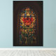 Dieser Leinenprint zeigt ein atemberaubendes Buntglasdesign mit einer lebhaften rote Rose mit grünen Blätter, die durch goldenes Licht beleuchtet werden. Die faszinierenden Details und leuchtenden Farben verleihen dem Raum ein Gefühl zeitloser Schönheit, Eleganz und spiritueller Wärme, die perfekt für die Verbesserung jedes Raumes im Inneren geeignet sind.