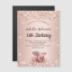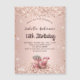 Ein goldener Hintergrund mit Imitaten, Glitzern, Konfetti und einer romantischen Vintagen Kutsche in Rose. Personalisieren und fügen Sie ihren Namen, Alter, Party-Details.