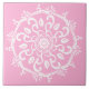 Dieses weiße Mandala sitzt auf einem hellrosa Hintergrund. Die Farbe ist einfach und weiblich. Teil der Payon Mandala Kollektion.