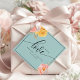 Mit diesen edlen Gastgeschenk Hochzeiten mit Blumen und Rose bedanken Sie sich. Das zarte Aquarelldesign mit sanften rosa und gelben Blüten auf aquamarinem, blauen Hintergrund schafft ein romantisches und charmantes Ambiente. Personalisieren Sie die Tags mit Ihren Namen und Hochzeitsdatum für eine einzigartige und herzliche Touch.