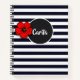 Schwarzweiß gestreiftes Spiralnotebook mit Monogramm-Rose in der Mitte. Sie können dieses Notebook personalisieren, indem Sie Ihren Namen oder Ihre Initialisierung mit der angepassten Vorlage hinzufügen.