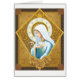 Customisez votre propre message personnel, ou laissez l'intérieur vide pour écrire à la main quelque chose de spécial. Ce design s'inspire d'une belle cale peinte et brodée sur un vêtement catholique porté par des masses de la Sainte Mère. Elle tient une tige de lys dans ses mains, un bouquet de roses la encadre, un halo couronne sa tête.