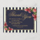 Elegante, schicke und landestypische Rosen mit marineblau und elfenbeinblauen Streifen und goldbedruckten Imitats, Dankeschön Postkarten. Dieses klassische und elegante Design eignet sich perfekt für stilvolle und trendige Events, wie Hochzeiten und alltägliche Anlässe. Das gesamte Foto ist gedruckt.